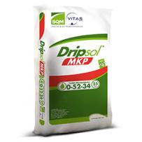Dripsol® MKP contém 52% de fósforo em P2O5 e 34% de potássio em K2O solúveis em água. A combinação das garantias desses dois nutrientes essenciais torna o Dripsol® MKP em um dos produtos solúveis em água mais concentrados do mercado, com um total de 86% de nutrientes. A ausência de nitrogênio permite o uso do Dripsol® MKP sem restrições de fases em todas as culturas. Dripsol® MKP é especialmente recomendado para as fases de enchimento de grãos/frutos.